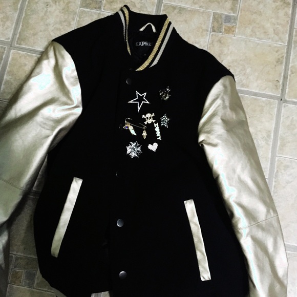 Express black and gold heavy bomber jacket. Pins are included. In great condition. Size xs/s.