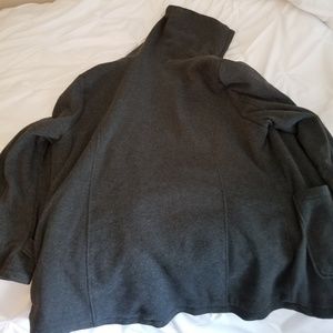 Gray, warm zip up coat with hood. Used, but in good shape. Small hole in the side of the pocket.