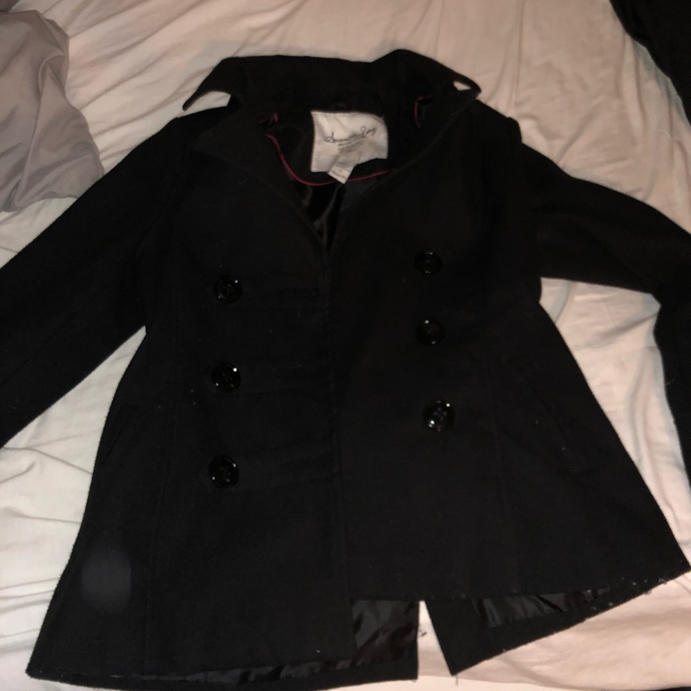 Great for putting over a dressed up outfit. Jet black button up coat with silk inside. 🖤