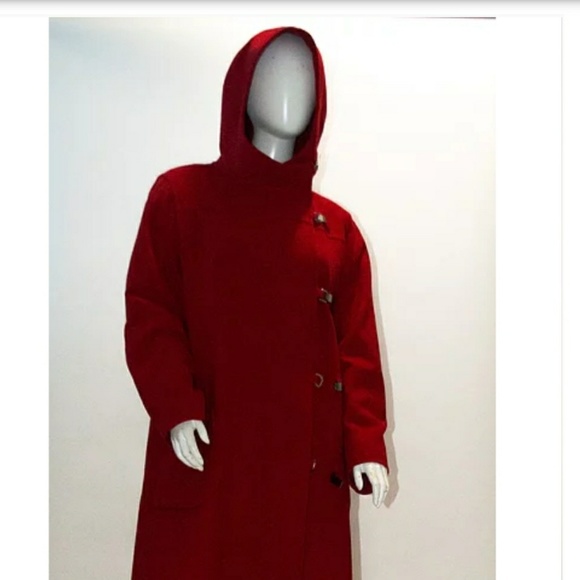 Full length red hooded wool, silver buckle straps .size 14 talla