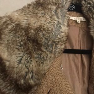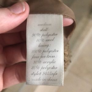 Wool blend coat with faux fur color. Heavy and warm. All buttons are attached.