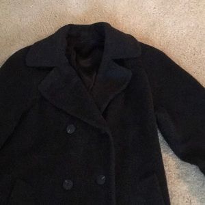 Gray heather very heavy coat, double breast buttons, size 6 but runs large, front pockets , fully lined. Excellent condition