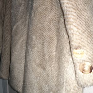 Fluffy coat with silk inside. Two useable buttons qnd pockets on front.
