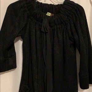 Cute black sweater coat. Has grosgrain ribbon tie at collar. Two pockets in front. Great condition