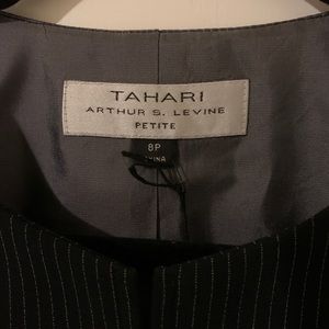 Coat office blazer. Black with white stripe. In great condition. I got it in a small shop in la. Petite size 8 it has flowy design below the waist.