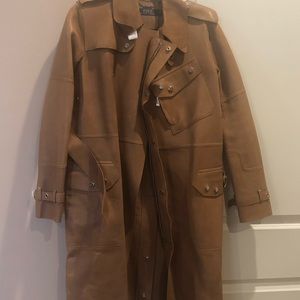 Lamb skin trench coat. Never worn. Very heavy and thick. Carmel color. Coat longer than in the picture