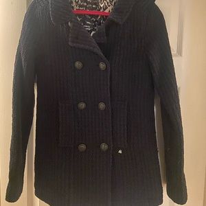 Black and blue long pea coat. Excellent condition.