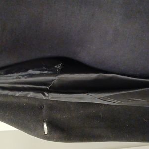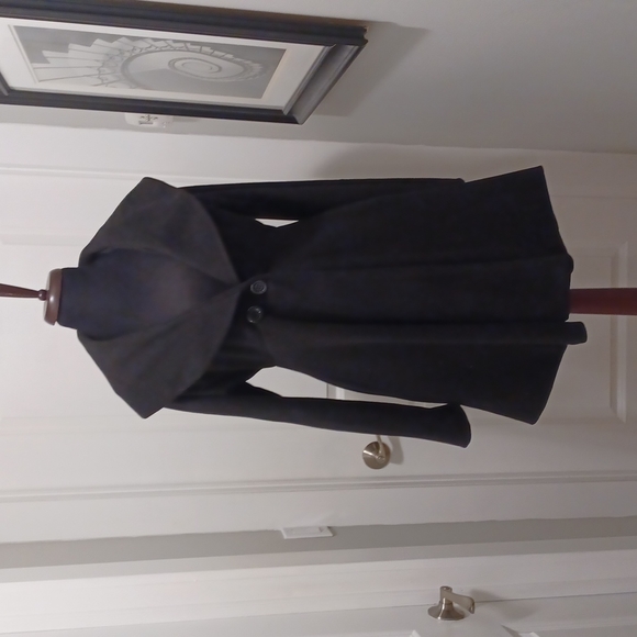 Coat lined. Single button closure. Slash pockets. Polyester. 34" length. Sleeve 25". Machine wash.
