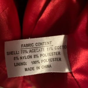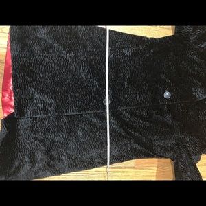 Beautiful black coat like new. Button in front. Gorgeous red lining inside.