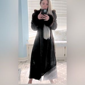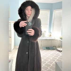 Vintage Long Warm Brown Wool & Fur Hooded Coat!