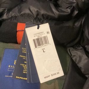 Printed polo coat hood with fur