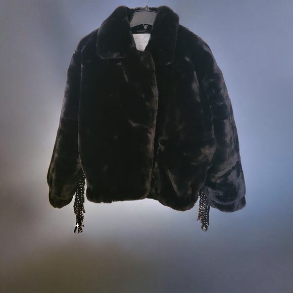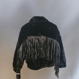 Black FAUX Fur with Studded Freinges