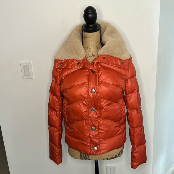 Rustic looking and WARM! This coat was bought from the catalog Sundance. It is in perfect condition and very cool looking!!! Makes the me think of “Yellowstone”. Bust 20.5”, sleeve length 18” top of shoulder to the bottom 23”