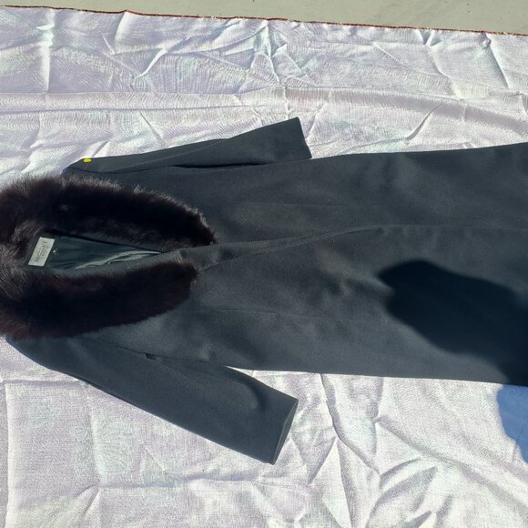 100% wool, lined long coat,fur lapel, one button