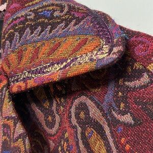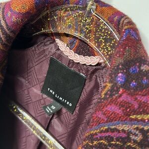 Beautiful Jacket with snap buttons and unique colors and detailing. Classy and unique. Lined. 2 Pockets. Well tailored.