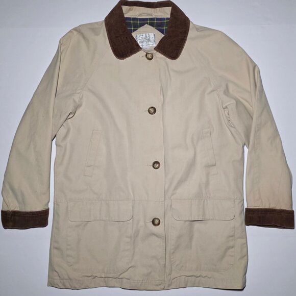 Coat Collectibles Womens Beige and Brown Button Up Short Trench Coat Size Small