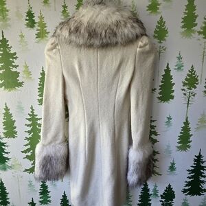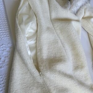 Elevate your style with this luxurious cream coat dress, featuring a chic faux fur trim. Perfect for a sophisticated look.