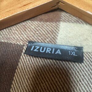 New, never worn. Lightweight. Nice earthtones colors with a block patten. Measures 42 inches from top to bottom. 95% Polyesters & 5% Spandex. Two front flap pockets. Machine wash cold.