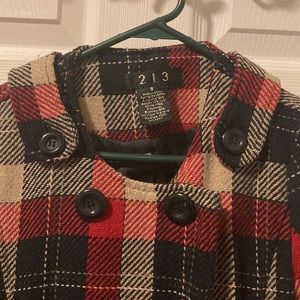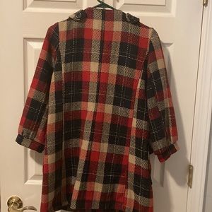 Beautiful vintage coat. Color is navy red and cream. Preowned. Very good vintage condition.