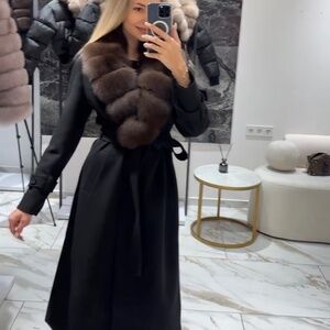 Elegant coat for fall and light winter weather. Natural fur. New!!! Small size