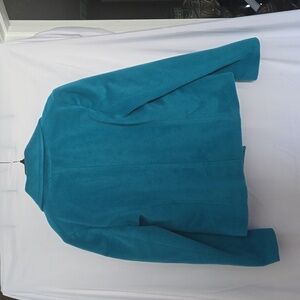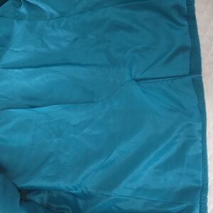 Liz Claiborne Crop Pea Style Double Coat with side pockets, split in back, beautiful lining, inside button for closure, soft tea/blue color. Pit to pit 22 inch,length 24 inch
