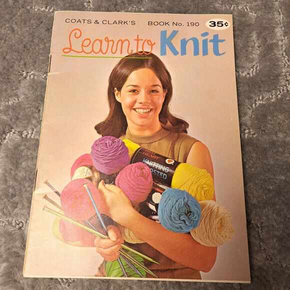Coats AND Clarks BOOK NO 190 Vintage 1968 Learn To Knit USA 35 CENTS MOD RETRO