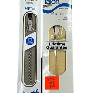 Coats & Talon Vintage Metal & Polyester Zippers - 14 Inches Ecru & Cream