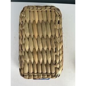 Like new condition. No chips or cracks. This is a Cobalt Blue Anchor Hocking Loaf Dish with a 1.5 qt capacity, made of glass. The set includes a baking dish and a woven serving basket. The loaf pan is microwaveable and measures 11" in length, 5.5" in width, and weighs 2 pounds 7 ounces.