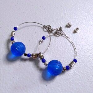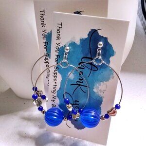 Calling all lovers of bold color and unapologetic charm, these cobalt blue beaded, nice sized hoops are your new obsession 💙✨. Hand-strung with a large textured center bead and glossy heart beads, they’re like a love letter from the '90s with a wink from your inner romantic rebel.