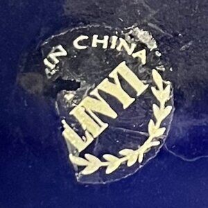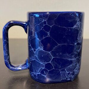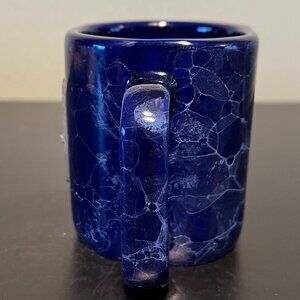 Cobalt Blue Bubble Glaze Marbleized Mug ~ Pewter Medallion w/ Moose ~ LINYI