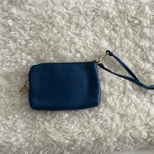 Pebbled leather, very functional and in great condition. Gold hardware.