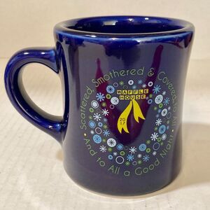 Cobalt Blue Ceramic Waffle House Christmas Coffee Mug Cup 2017 Snowflakes Tuxton