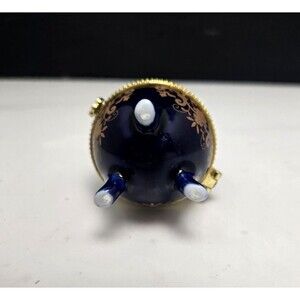 Cobalt Blue Egg Trinket Box Footed Porcelain Hinged Lid Floral Design Vintage 3"