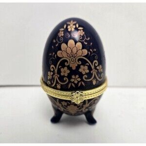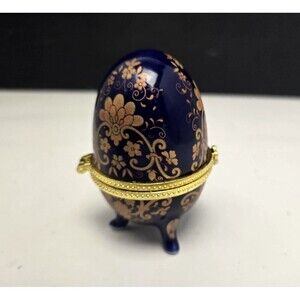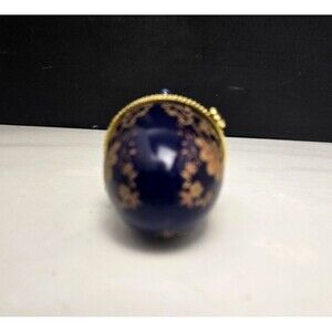 Discover the charm of yesteryear with this exquisite 3-inch Cobalt Blue Egg-Shaped Trinket Box.