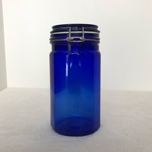 Cobalt Blue Hinged Lid Cylindrical Glass Container