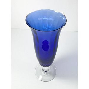 Cobalt Blue Optic Footed Trumpet Glass Vase, 11” Vintage 1970’s Contemporary