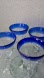This is a beautiful set of four hand-blown Mexican glassware pieces, featuring a vibrant cobalt blue rim. Each glass is uniquely crafted with a clear, textured stem and a slightly tapered bowl, making them perfect for serving margaritas, wine, or cocktails. These glasses are sturdy and have a classic vintage-style appeal, ideal for entertaining or adding a rustic charm to your collection.