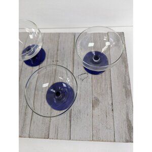 Cobalt Blue Sherbet Glasses Drinking Stemmed Set of 4 Clear Cocktail