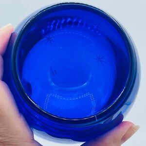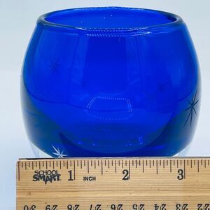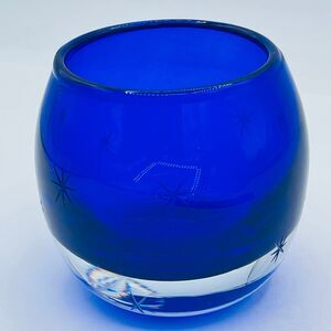 Cobalt Blue Starburst Etched Stars Glittery Glass Votive Candle Holder Poland