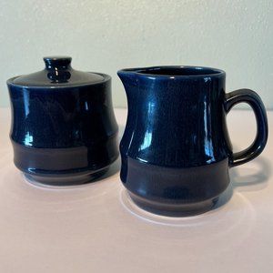 Cobalt Blue Stoneware Creamer & Covered Sugar Bowl Set ~ Made in Japan