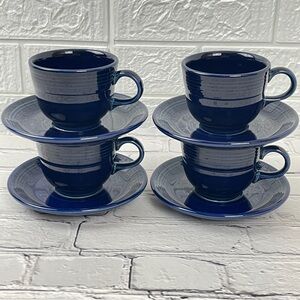 Cobalt Blue Tea Cups an Saucers Set of 4 Unbranded
