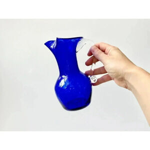 Awesome little cobalt blue pitcher. The blue is kind of a tortoise shell pattern. It's suuuper pretty and in excellent condition.