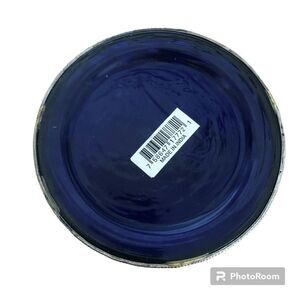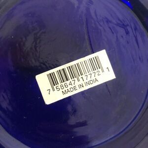 Description: Cobalt blue glass pitcher embellished with silver toned filigree.