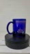 Beautiful clear Cobalt blue single handled mug depicts a skyline of Boston.