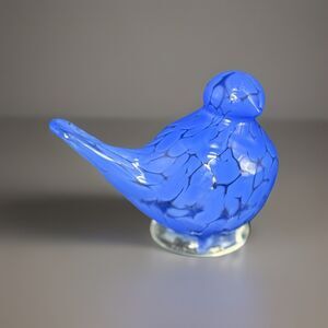 Cobalt Crackle Glass Bird Figurine - Hand Blown Art Glass Murano Style