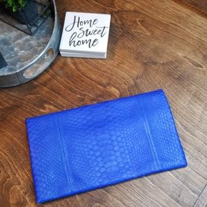 Unique Handcrafted & Genuine Python skin fold over clutch color is cobalt super soft inside and out you can buy a chain and wear it as a shoulder bag ((chain not included)) ask questions before purchasing no returns