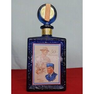 Vintage Cobalt Blue empty liquor Decanter. Made to commemorate the 50th American Legion Anniversary. The bottle measures 11"tall with a stopper (8" tall without) 4.5" wide x 2.25" deep, weighs 2.3lb.