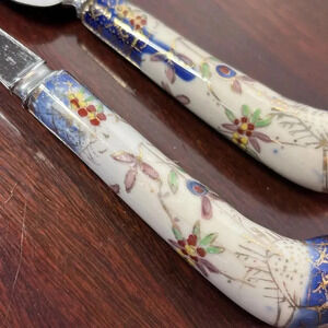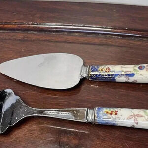 Cobalt blue Enamel Floral Charcuterie Fork & Spatula Sheffield England