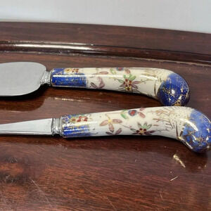 Charcuterie serving set vintage cobalt blue enamel cloisonné handles