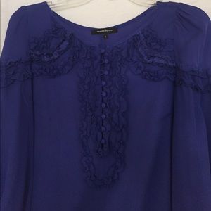 Cobalt blue chiffon blouse with ruffle detail with long sleeve and elastic at the wrist